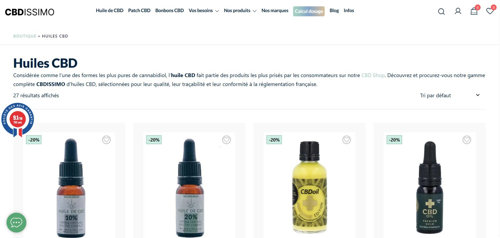 La gamme de la boutique est organisée autour de besoins précis comme la relaxation, le repos, l’équilibre, le confort, l’énergie, le sport ou encore la concentration. Les huiles CBD de l’enseigne sont appréciées pour leur simplicité d’utilisation, leur régularité et leur excellent rapport qualité-prix. À noter que les produits de CBDISSIMO se déclinent dans une gamme plus large incluant gélules, patchs, infusions, cosmétiques et produits alimentaires, avec une attention portée sur la biodisponibilité et la qualité des formulations.