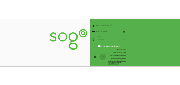 - Accéder à la messagerie et à l’ensemble des services SOGo disponibles.